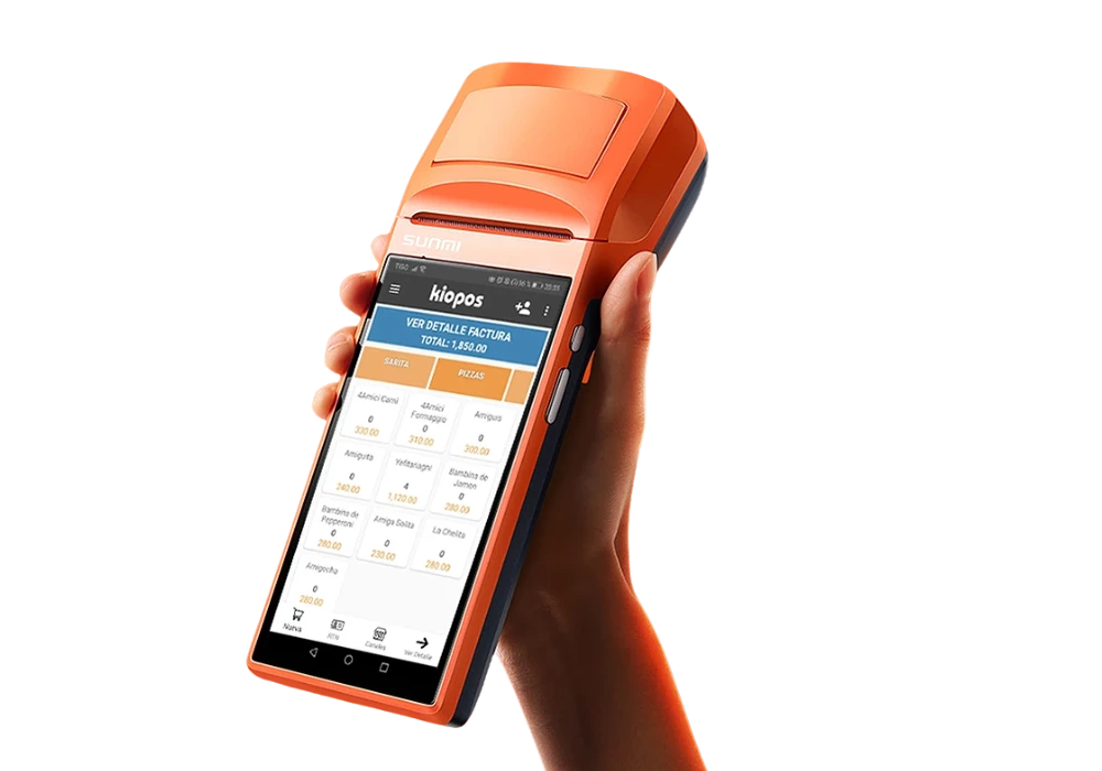 Toma de pedidos en mesa, división de cuentas, traslados entre mesas y cobro desde el teléfono.
